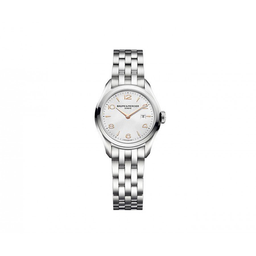 Firmato Baume & Mercier, dalla collezione Clifton, un orologio con movimento al quarzo e montato su un cinturino in acciaio.