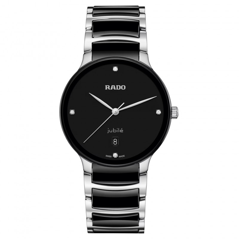 Il classico Rado Centrix Quartz Diamonds è stato rielaborato non solo tecnicamente, ma anche esteticamente. Il nuovo modello dispone di un cristallo zaffiro arrotondato che si estende fino al bordo e di una cassa ricurva che si integra con l’estremità del cristallo. Le anse della cassa ridisegnate e il bracciale in acciaio lucido con maglie centrali in ceramica high-tech nera completano l’estetica rinnovata di questo iconico segnatempo. Il quadrante nero laccato, impreziosito da 4 brillanti e sottolineato dal logo “jubilé” stampato, si abbina perfettamente alle lancette color rodio. Grazie al movimento al quarzo calibro R073 dotato di PreciDrive e HeavyDrive, il segnatempo è dotato di grande precisione e resistenza agli urti. L'orologio è impermeabile fino a 50 m.