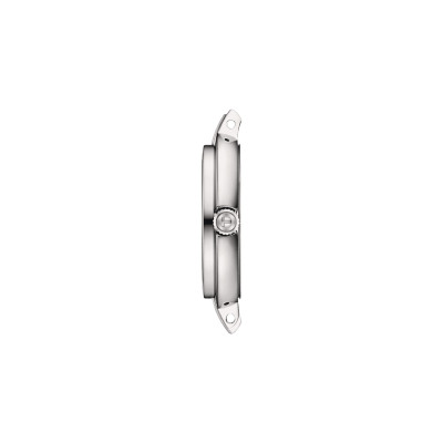 L'eleganza del Tissot Flamingo non ti lascerà indifferente. La sua cassa rotonda contrasta con il suo bracciale sottile. Offre la possibilità di scegliere tra quadrante nero, bianco o madreperla, completato da un bracciale in acciaio inossidabile, oro o bicolore con chiusura a farfalla, o in pelle con fibbia standard. Protetto da un vetro zaffiro antigraffio, ogni modello contiene un movimento al quarzo di fabbricazione svizzera.
