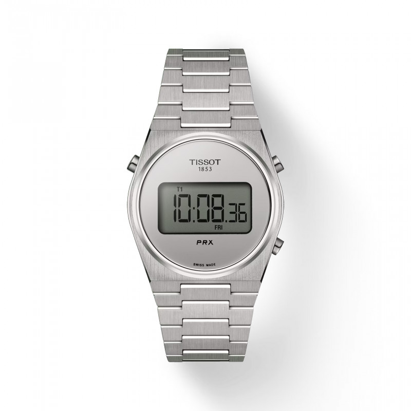 Il Tissot PRX Digital, un mix armonioso dell'iconico design PRX del 1978 e del Tissot Digital Quartz (Calibr o4012), mostra brillantemente un ibrido di epoche passate e influenze digitali. Unendo perfettamente l'estetica retrò con un tocco contemporaneo, è il segnatempo per i pionieri di oggi. Il PRX Digital, disponibile nelle opzioni da 35 mm e 40 mm e in una varietà di colori, soddisfa tutti i polsi, mentre la moltitudine di funzioni - doppio fuso orario, giorno-data, cronografo e altro ancora - soddisfa tutte le esigenze. Racchiusi da una cassa resistente all'acqua fino a 100 metri e corredati da un bracciale satinato e una chiusura pieghevole a tripla lama, questi segnatempo sono realizzati sia per la resistenza che per il comfort. La collezione Tissot PRX Digital simboleggia un viaggio nel tempo, un omaggio al passato e un brindisi al futuro.