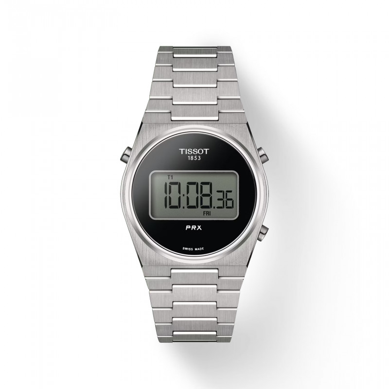 Il Tissot PRX Digital, un mix armonioso dell'iconico design PRX del 1978 e del Tissot Digital Quartz (Calibr o4012), mostra brillantemente un ibrido di epoche passate e influenze digitali. Unendo perfettamente l'estetica retrò con un tocco contemporaneo, è il segnatempo per i pionieri di oggi. Il PRX Digital, disponibile nelle opzioni da 35 mm e 40 mm e in una varietà di colori, soddisfa tutti i polsi, mentre la moltitudine di funzioni - doppio fuso orario, giorno-data, cronografo e altro ancora - soddisfa tutte le esigenze. Racchiusi da una cassa resistente all'acqua fino a 100 metri e corredati da un bracciale satinato e una chiusura pieghevole a tripla lama, questi segnatempo sono realizzati sia per la resistenza che per il comfort. La collezione Tissot PRX Digital simboleggia un viaggio nel tempo, un omaggio al passato e un brindisi al futuro.