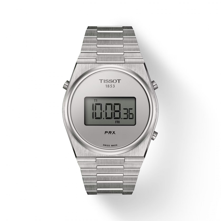 Il Tissot PRX Digital, un mix armonioso dell'iconico design PRX del 1978 e del Tissot Digital Quartz (Calibr o4012), mostra brillantemente un ibrido di epoche passate e influenze digitali. Unendo perfettamente l'estetica retrò con un tocco contemporaneo, è il segnatempo per i pionieri di oggi. Il PRX Digital, disponibile nelle opzioni da 35 mm e 40 mm e in una varietà di colori, soddisfa tutti i polsi, mentre la moltitudine di funzioni - doppio fuso orario, giorno-data, cronografo e altro ancora - soddisfa tutte le esigenze. Racchiusi da una cassa resistente all'acqua fino a 100 metri e corredati da un bracciale satinato e una chiusura pieghevole a tripla lama, questi segnatempo sono realizzati sia per la resistenza che per il comfort. La collezione Tissot PRX Digital simboleggia un viaggio nel tempo, un omaggio al passato e un brindisi al futuro.
