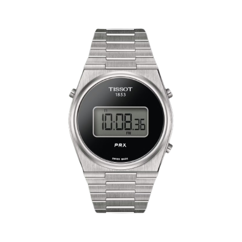 Il Tissot PRX Digital, un mix armonioso dell'iconico design PRX del 1978 e del Tissot Digital Quartz (Calibr o4012), mostra brillantemente un ibrido di epoche passate e influenze digitali. Unendo perfettamente l'estetica retrò con un tocco contemporaneo, è il segnatempo per i pionieri di oggi. Il PRX Digital, disponibile nelle opzioni da 35 mm e 40 mm e in una varietà di colori, soddisfa tutti i polsi, mentre la moltitudine di funzioni - doppio fuso orario, giorno-data, cronografo e altro ancora - soddisfa tutte le esigenze. Racchiusi da una cassa resistente all'acqua fino a 100 metri e corredati da un bracciale satinato e una chiusura pieghevole a tripla lama, questi segnatempo sono realizzati sia per la resistenza che per il comfort. La collezione Tissot PRX Digital simboleggia un viaggio nel tempo, un omaggio al passato e un brindisi al futuro.