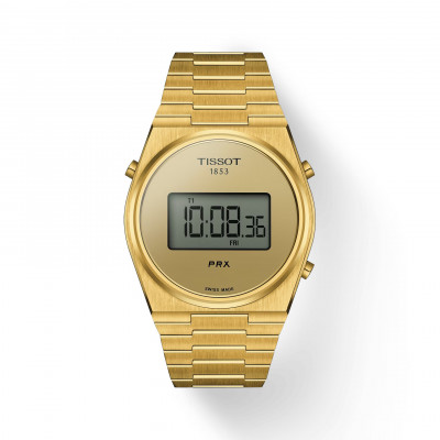 Il Tissot PRX Digital, un mix armonioso dell'iconico design PRX del 1978 e del Tissot Digital Quartz (Calibr o4012), mostra brillantemente un ibrido di epoche passate e influenze digitali. Unendo perfettamente l'estetica retrò con un tocco contemporaneo, è il segnatempo per i pionieri di oggi. Il PRX Digital, disponibile nelle opzioni da 35 mm e 40 mm e in una varietà di colori, soddisfa tutti i polsi, mentre la moltitudine di funzioni - doppio fuso orario, giorno-data, cronografo e altro ancora - soddisfa tutte le esigenze. Racchiusi da una cassa resistente all'acqua fino a 100 metri e corredati da un bracciale satinato e una chiusura pieghevole a tripla lama, questi segnatempo sono realizzati sia per la resistenza che per il comfort. La collezione Tissot PRX Digital simboleggia un viaggio nel tempo, un omaggio al passato e un brindisi al futuro.