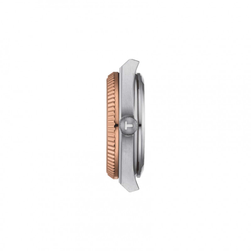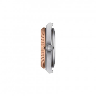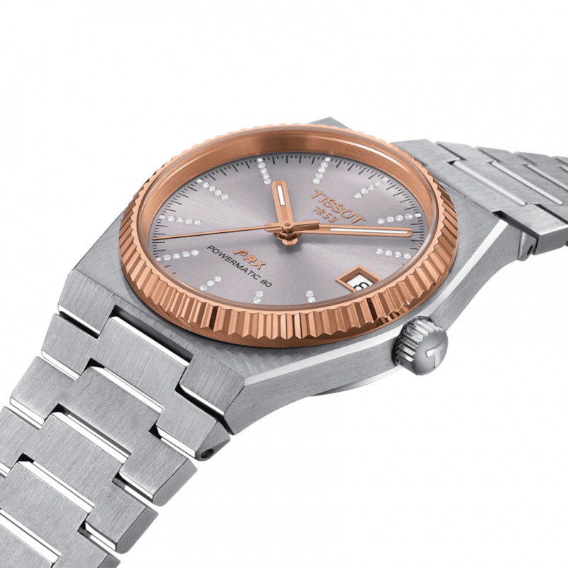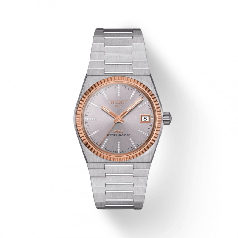 Il Tissot PRX si avvicina al suo design iconico degli anni '70. Con un diametro di 35 mm, la cassa in acciaio satinato e il bracciale integrato si adatteranno perfettamente al polso di tutti. La lunetta in oro rosa 18 carati conferisce carattere ed eleganza a questo segnatempo.