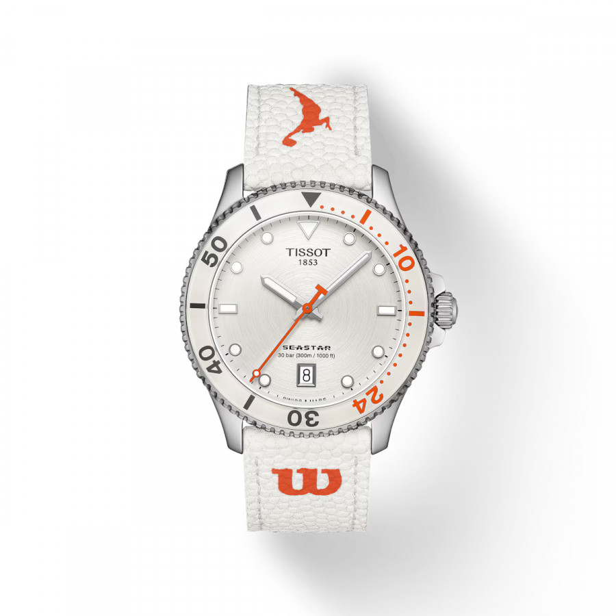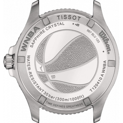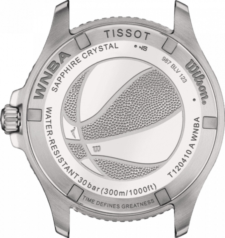 Orologio Tissot Seastar Wilson WNBA al quarzo della collezione T-Sport con cinturino realizzato con lo stesso materiale del pallone da gioco WNBA Evo-NXT di Wilson