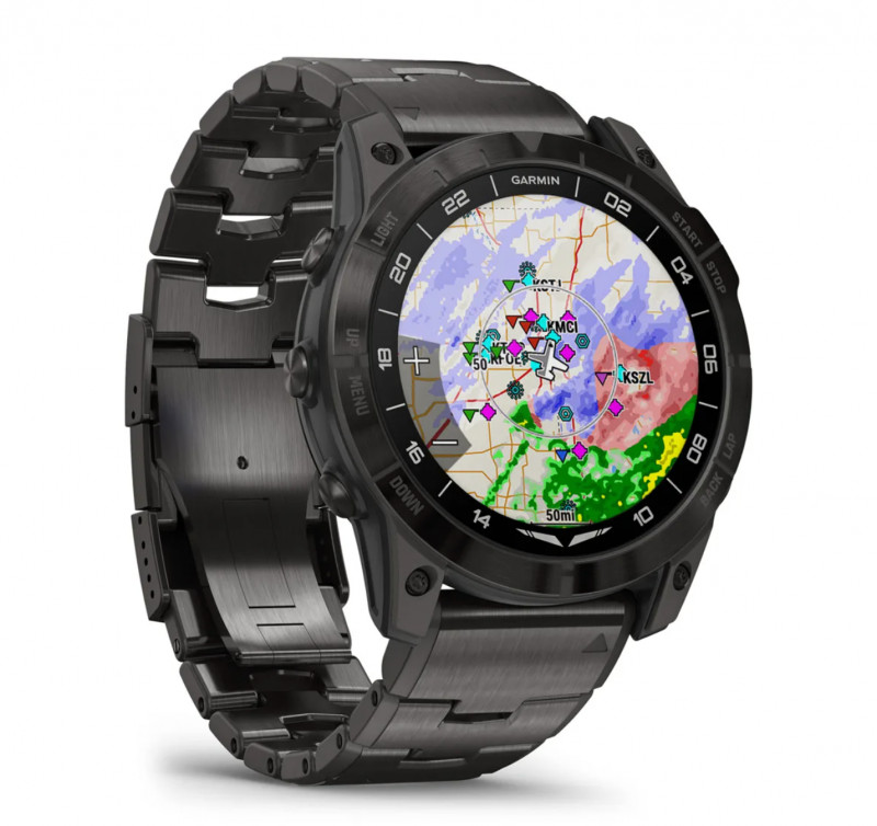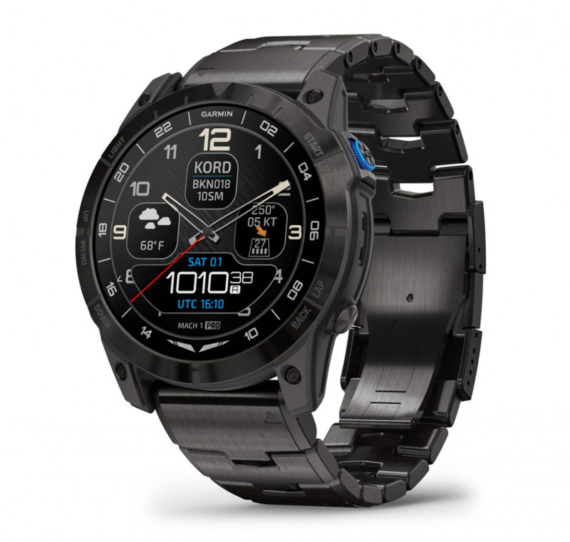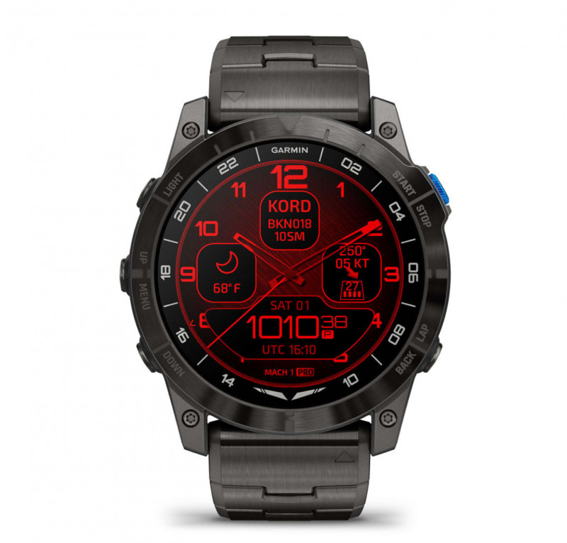 Be ready for takeoff, day or night. This premium smartwatch has a built-in flashlight, superbright AMOLED display and advanced tools for flying and fitness.