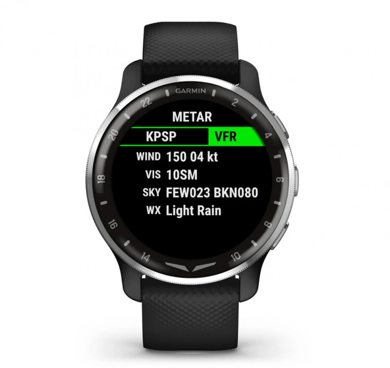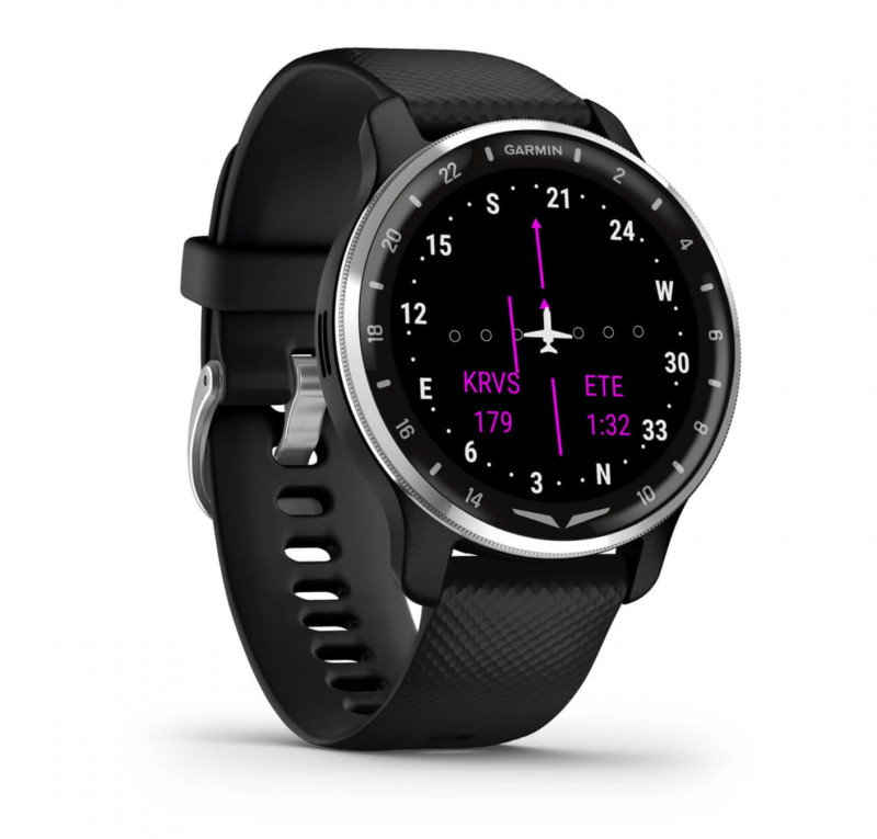 Orologio Aviator Smartwatch GPS concepito per il volo con cinturino nero, della collezione Sport & Fitness di Garmin.