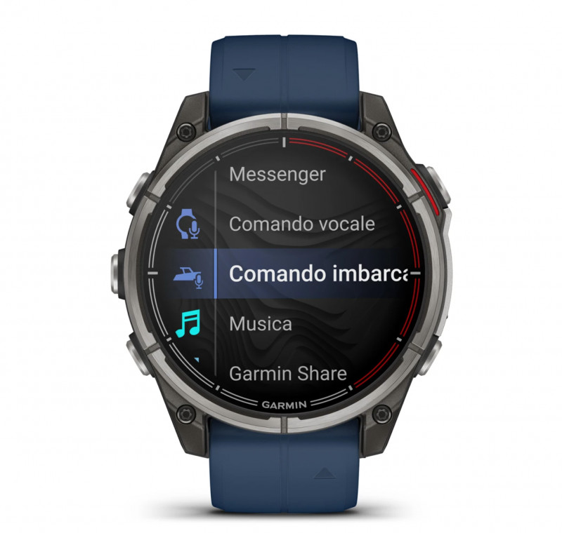 Il quatix 8 è dotato di un luminoso schermo AMOLED da 1,4″ e una torcia a LED, per avere direttamente sul polso tutte le funzioni utili in barca e anche a terra.
